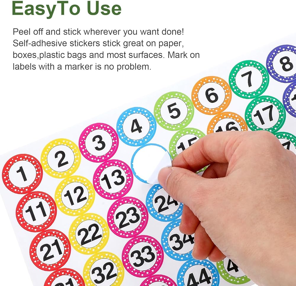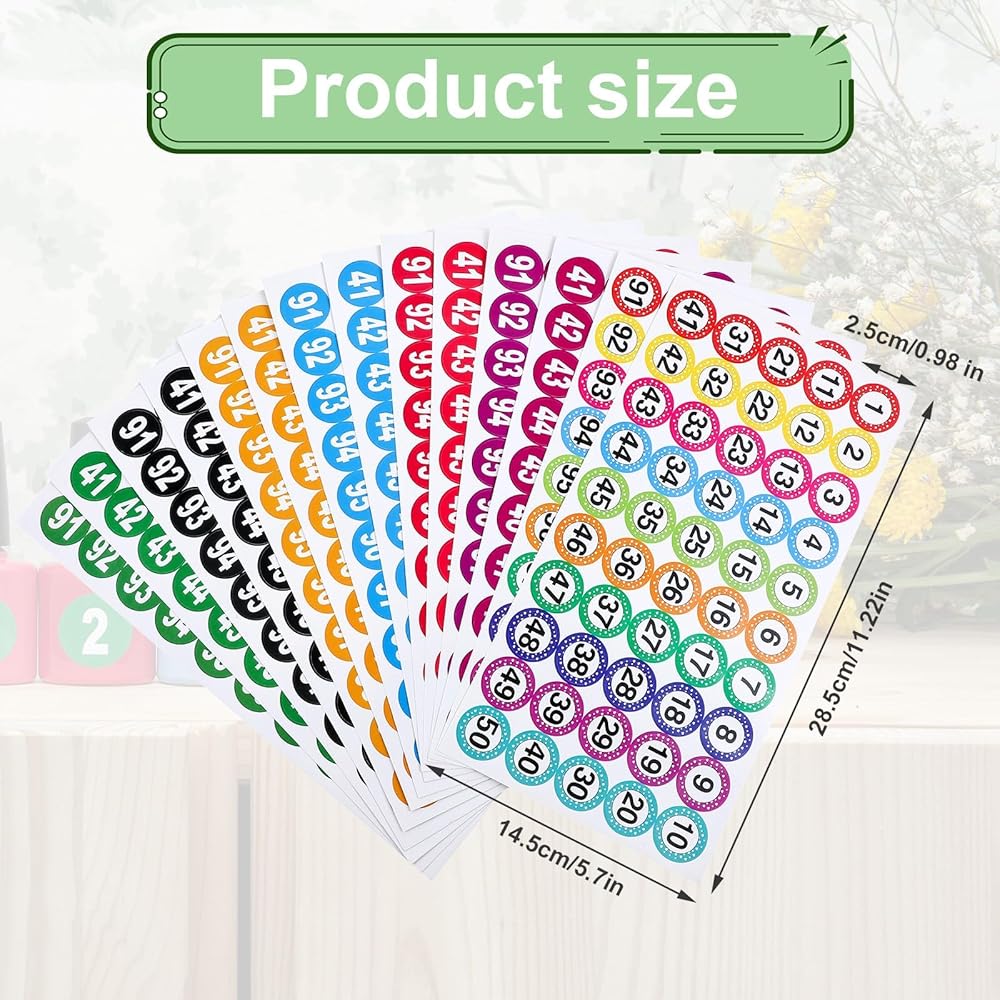 【Packing List】 You will receive 14sheets number stickers, a total of 7 sets of numbered stickers, ranging from 1 to 100, with a diameter of 2.5 cm/1In for a single small number sticker