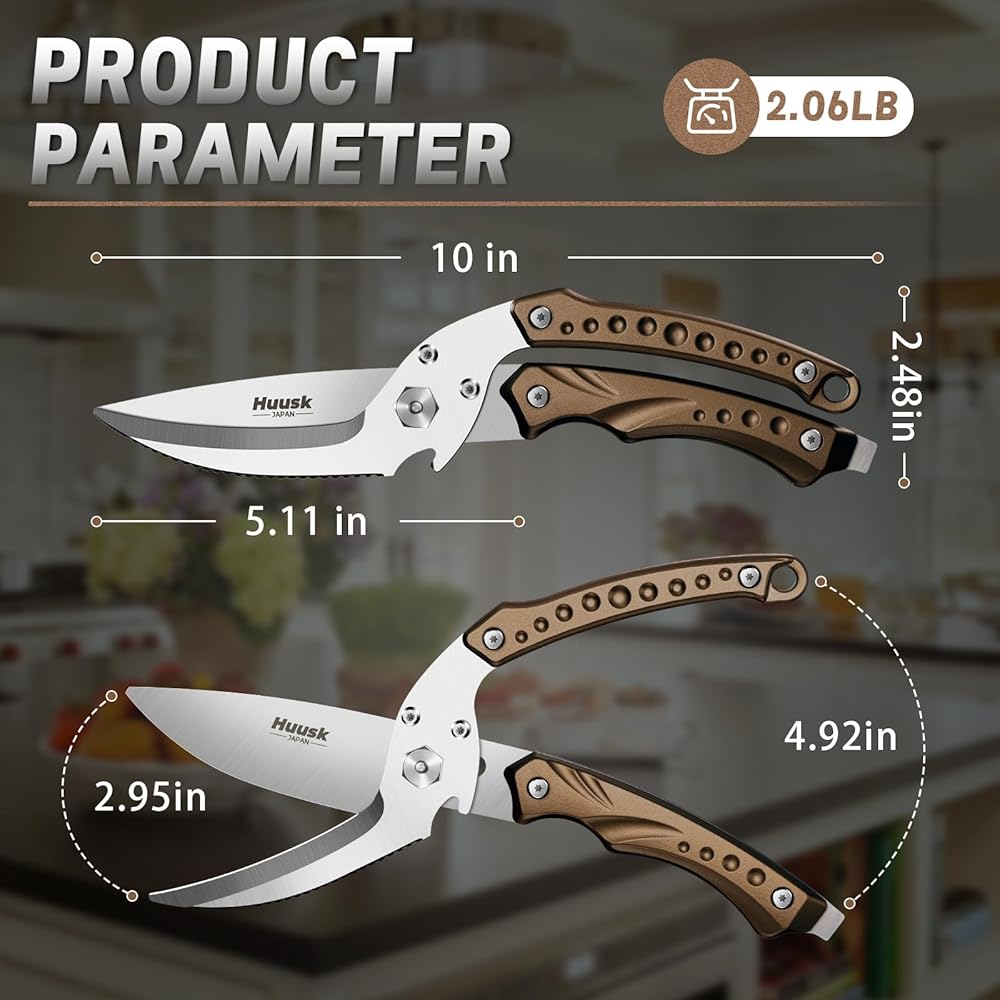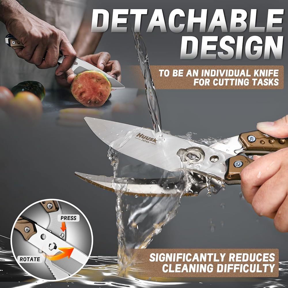 • التنظيف السهل: ما عليك سوى قلب المسمار في الجزء العلوي من المقبض لضبط ضيق قص الطهي ، ويمكنك بسهولة تقسيم مقص قطع اللحوم إلى سكين أصغر لتنظيف شامل. استخدام ماء رغوة صابون لتنظيف قصك الطهي ثم تجفيفهما ، والحفاظ عليهما جافًا لفترة طويلة حتى تتمكن دائمًا من الحصول على زوج من الأزرار العلامة التجارية.
