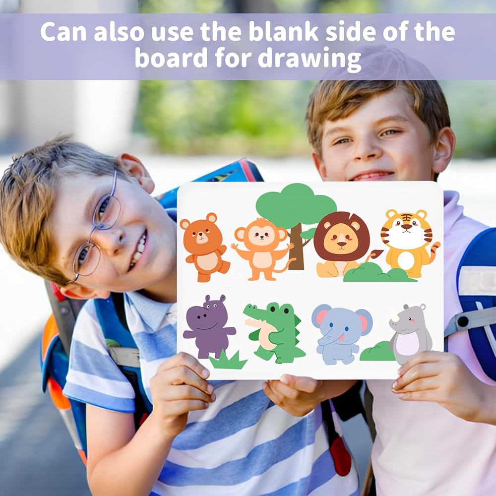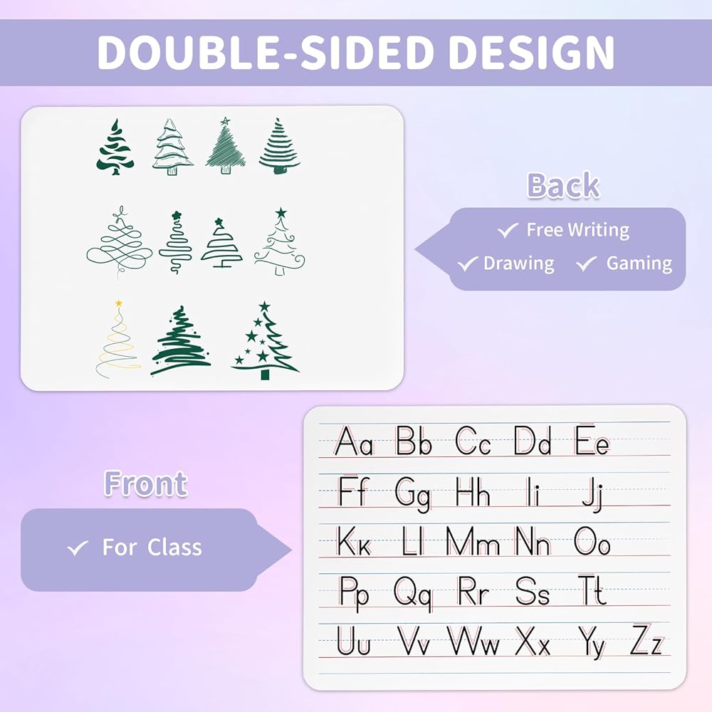 Our small white board uses a double-sided design, one side is a white board with lines, and the other is a blank whiteboard. The side with lines is suitable for practicing spelling, writing or letters, which helps to write letters correctly; The blank side can be used for painting or playing games, or it can fully release your creativity to create