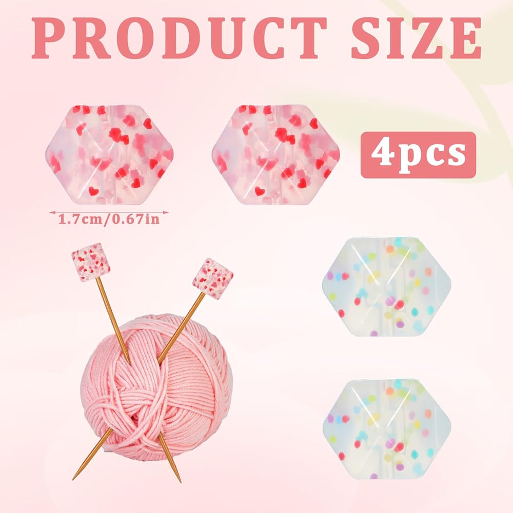 Durable and Food-Grade Quality: Our 4-piece silicon hexagon knitting needle stoppers are made of high-quality food-grade silicone, ensuring durability and safety. These cute, colorful needle stoppers securely hold your stitches in place, preventing them from slipping off your needles.