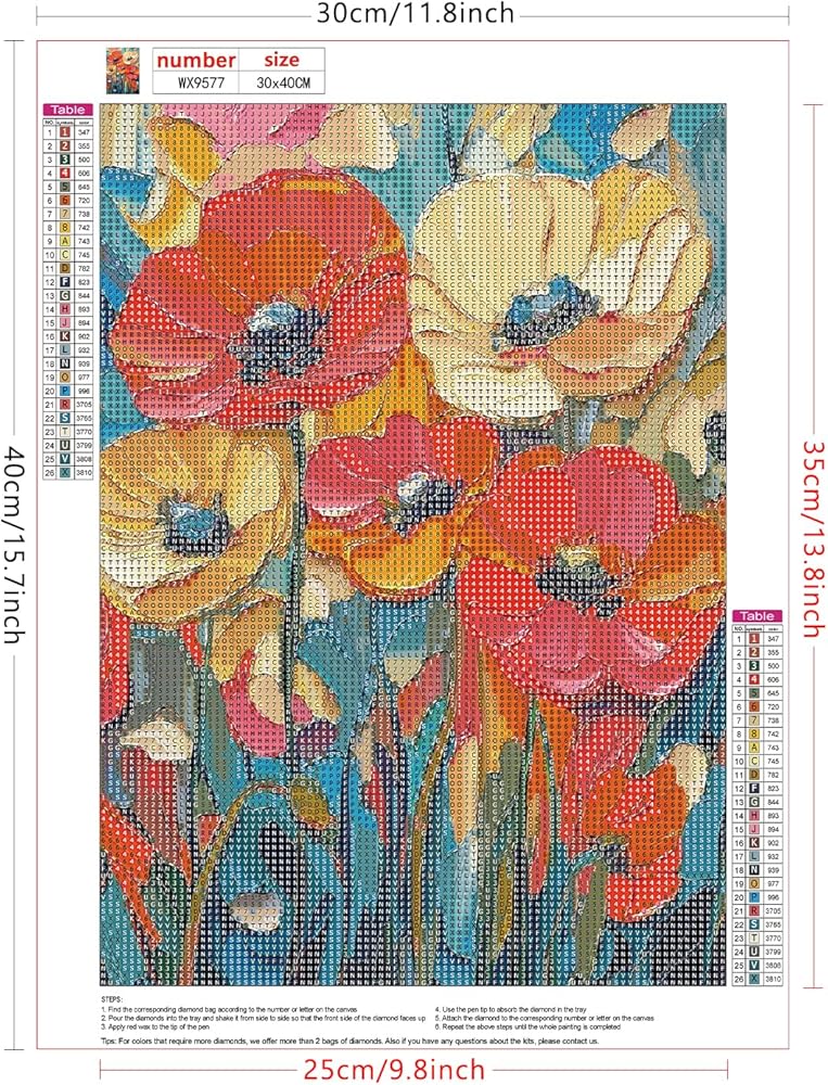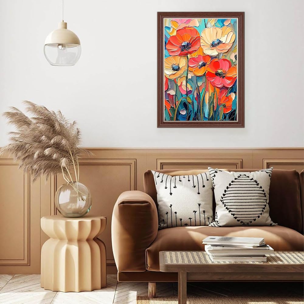 Lxmsja Abstract Poppies Diamond Art Kits for Adults, Flower Scenery DIY Full Drill Diamond Painting Kits for Beginners, 5D Gem Art Crafts for Adults, Home Wall Decor 12x16 inch