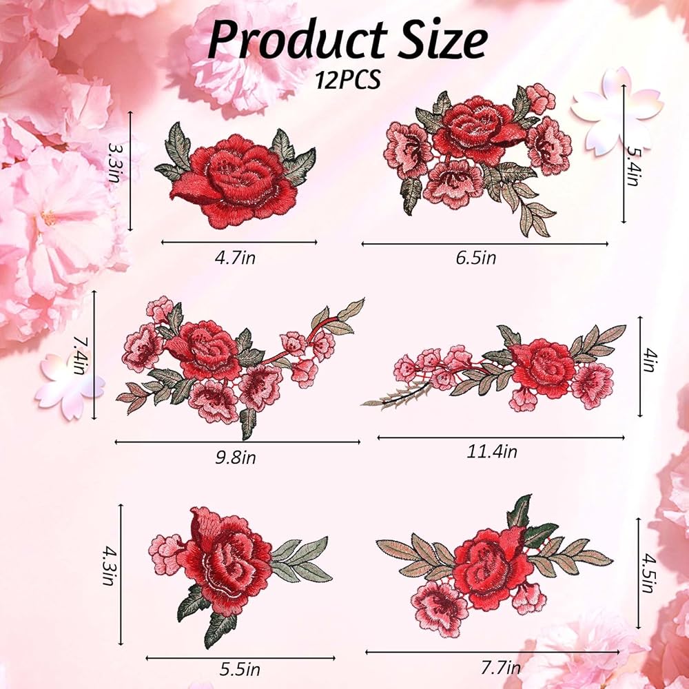 【Package Contents】The package contains 12 red rose patches, a total of 6 different styles, 2 pieces of each, and each patch has different sizes, suitable for decorating clothes, skirts, shirts, backpacks, etc. to meet your usage needs