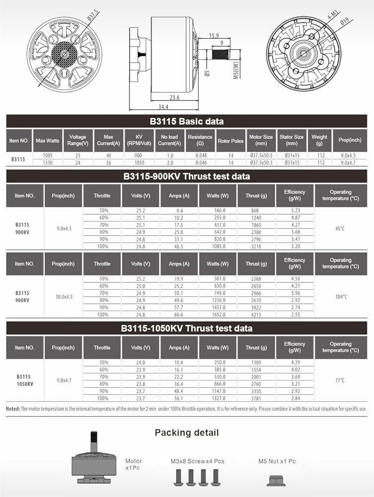 Designed with high-precision bearings, the 3115 brushless fpv motors offer ultra-smooth and wear-resistant operation