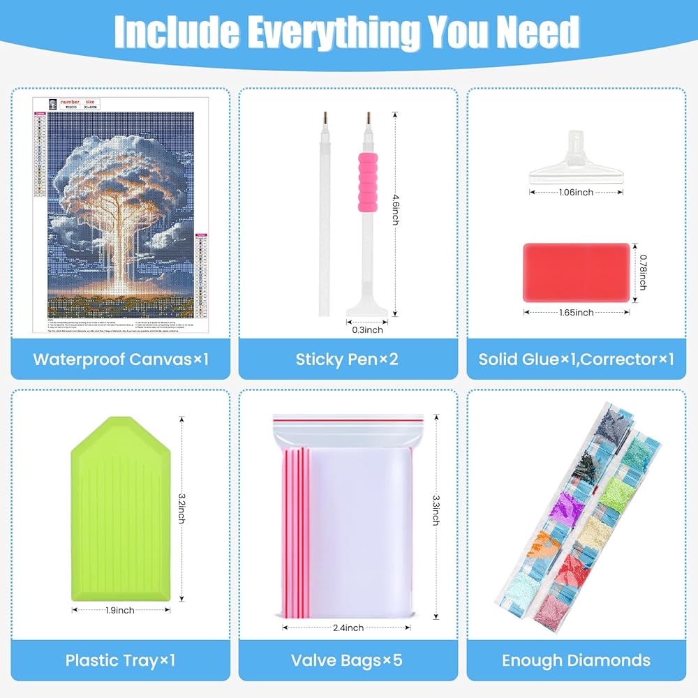 Contain All Tools - Diamond gem art painting kits contain all tools:1 high definition canvas,1 diamond tray,1 big wax,2 diamond pens,1 replaceable correction pen,5 ziplock bags and enought round diamonds, so you don't need to purchase any additional tools.