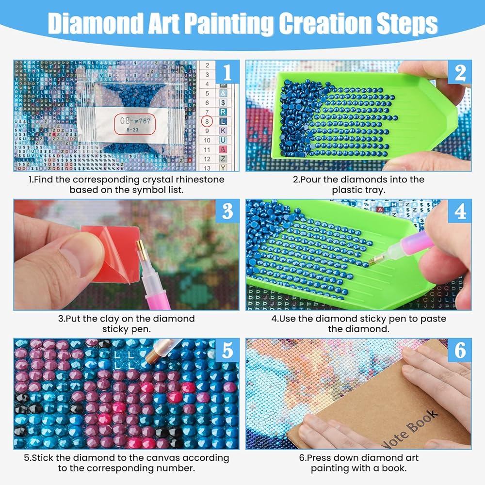 Canvas - Diamonds gem painting art kits use high-definition printed waterproof canvas.Clear symbols and numbers can effectively prevent eye fatigue.The glue bottom and transparent protective film on the surface of the canvas ensure that each diamond can be firmly attached to the canvas.
