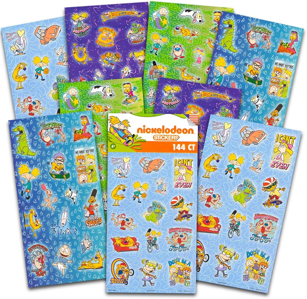 • This Nickelodeon party favors pack also includes 144 stickers, featuring characters from classic favorites including Rugrats, Hey Arnold, and more.