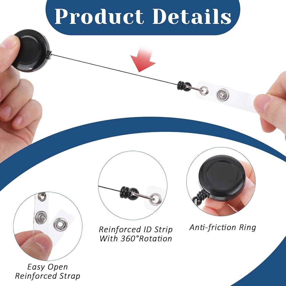 Reliable Materials: Made of ABS plastic, metal belt clips, and reinforced nylon ropes, these retractable ID holders are compact and durable, and can be extended up to 27.5 inches for easy access.