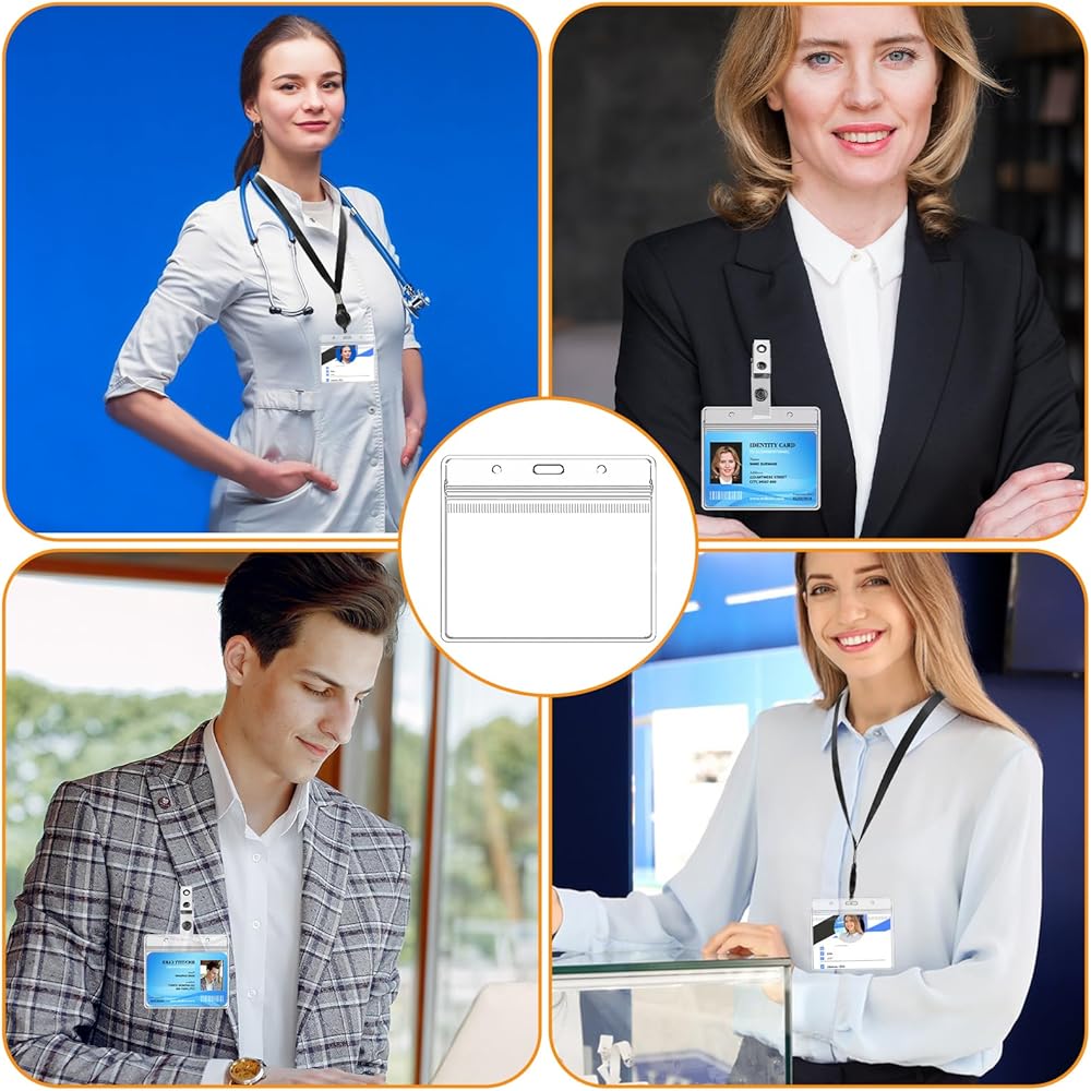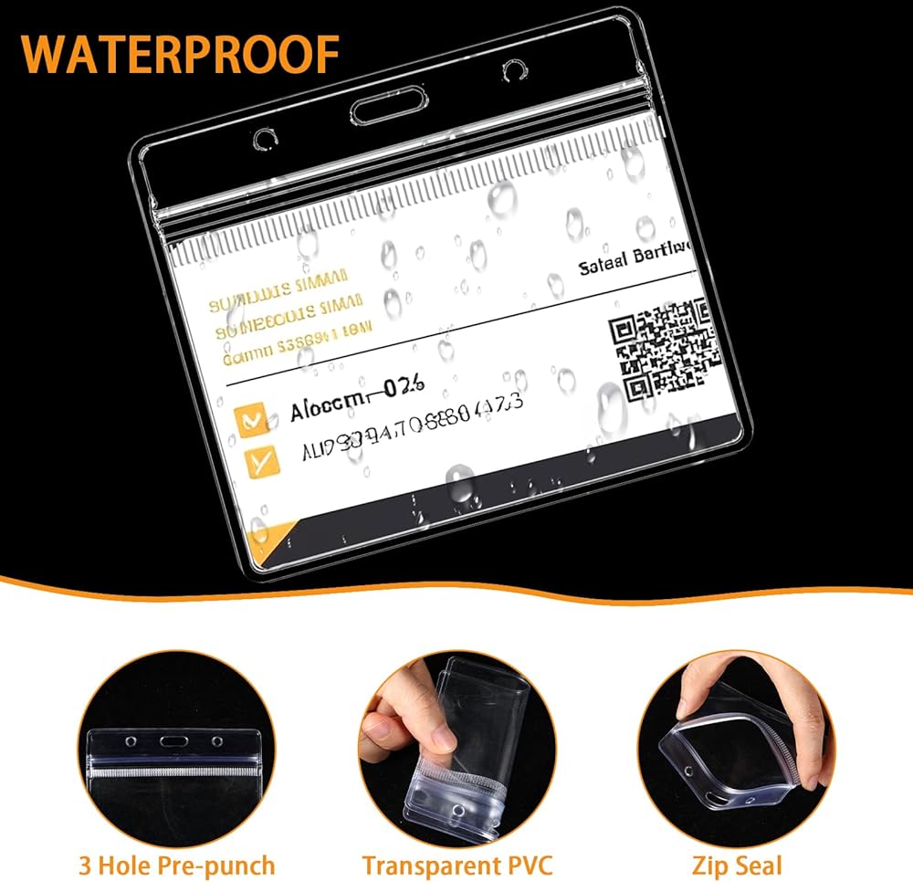 【Waterproof and Reusable】The clear badge holder horizontal comes with a reusable Zip Seal strip, which is effectively waterproof. The horizontal ID badge holder has 3 Hole Pre-punch for easy use