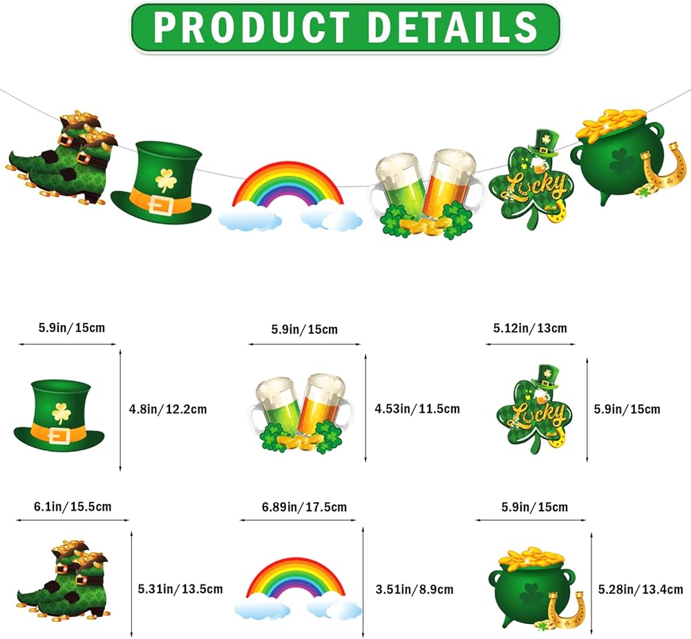 • تشمل الحزمة: 1*لافتة عيد ميلاد سعيد في باتريك ، 1*St Patricks شعار إكليل ، 12*St Patricks معلقة الزخارف (6 قواطع الورق في تصميمات مختلفة ؛ 6pcs تحلقات معلقة على الرقائق الخضراء).