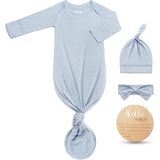 3. مجموعة جاهزة للهدية: هذه الحزمة المكونة من 4 قطع (ثوب + قبعة + عقال + علامة الاسم الخشبية الطفل) الزوجي كطفل رضيع يعود إلى المنزل أو ملابس فوتش حديثي الولادة. تعمل النغمات المحايدة والتصميم للجنسين لكل من الطفلة النائمة من 0 إلى 3 أشهر والأولاد ، ومثالية للاستحمام للأطفال ، وإعلانات الولادة (كبديل للإعلان عن الطفل) ، أو احتفالات بارزة.