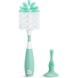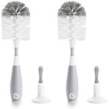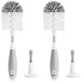 The Munchkin Bristle Bottle Brush features a patented suction cup base, so when scrubbing is done, you simply pop it onto the countertop to keep it upright, fast-drying and off of counters. The non-slip handle gives soapy hands a firm grip, and sturdy nylon bristles are tough on dirt, yet gentle on baby's bottles. Since nobody has time for flinging soapy water around the kitchen, we developed our bristles to reduce the dreaded splash-back when it pops out of the bottle opening. We know baby bottles come in all shapes and sizes so we added a new flexing neck to help get into every bottle with ease. Just when you thought we couldn't cram in any more features into such a small package - there's also a convenient soft rubber nipple brush inside the handle, making this brush equally suited for cleaning pump parts, valves, and other small bottle accessories, too. The Bristle Bottle Brush keeps your bottle cleaning routine sanitary and your sanity intact, so you only need to worry about the bottle parts, pots and pans you can see, not the dirty stuff you can't.