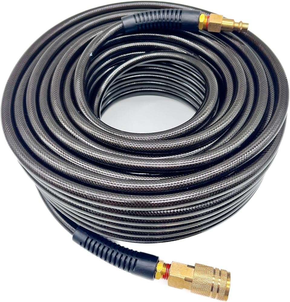 أداء خرطوم الهواء : خرطوم ضاغط الهواء الخاص بنا استخدم مقرنات ومقاطع سريعة معرف 3/8 بوصة لسهولة الاتصال بضواغط الهواء وأدوات الهواء. محددات الانحناء تقلل من القلق وتساعد على تمديد عمر الخرطوم. يمكن من خلال تدفق الهواء أكثر من 1/4 بوصة خرطوم الهواء المقواة.