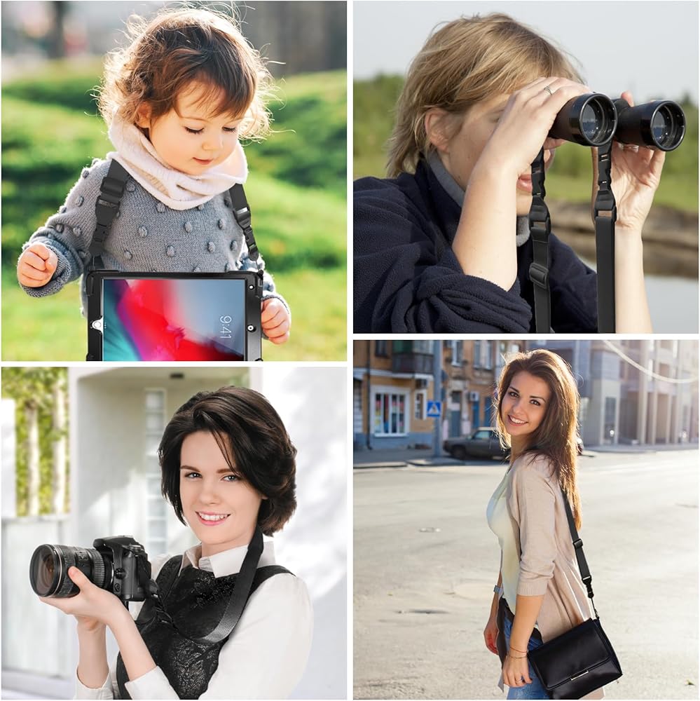 • حزام الكتف العالمي: يوفر Fieil iPad Lanyard براعة ممتازة. ليس فقط مناسبة لحالات الكمبيوتر اللوحي ولكن أيضًا للأجهزة الأخرى مثل الكاميرات والهواتف المحمولة والمنظار وحقائب الظهر المحمول وحقائب اليد. كما أنها مناسبة للاستخدام على مقاعد السيارة.