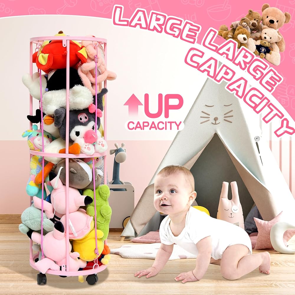 ✅[ Stylish & Modern Design]-- The elegant pink finish adds a touch of charm to your bedroom, or living space, stylish stuffed animal holder adds charm while keeping toys tidy in any room setting.