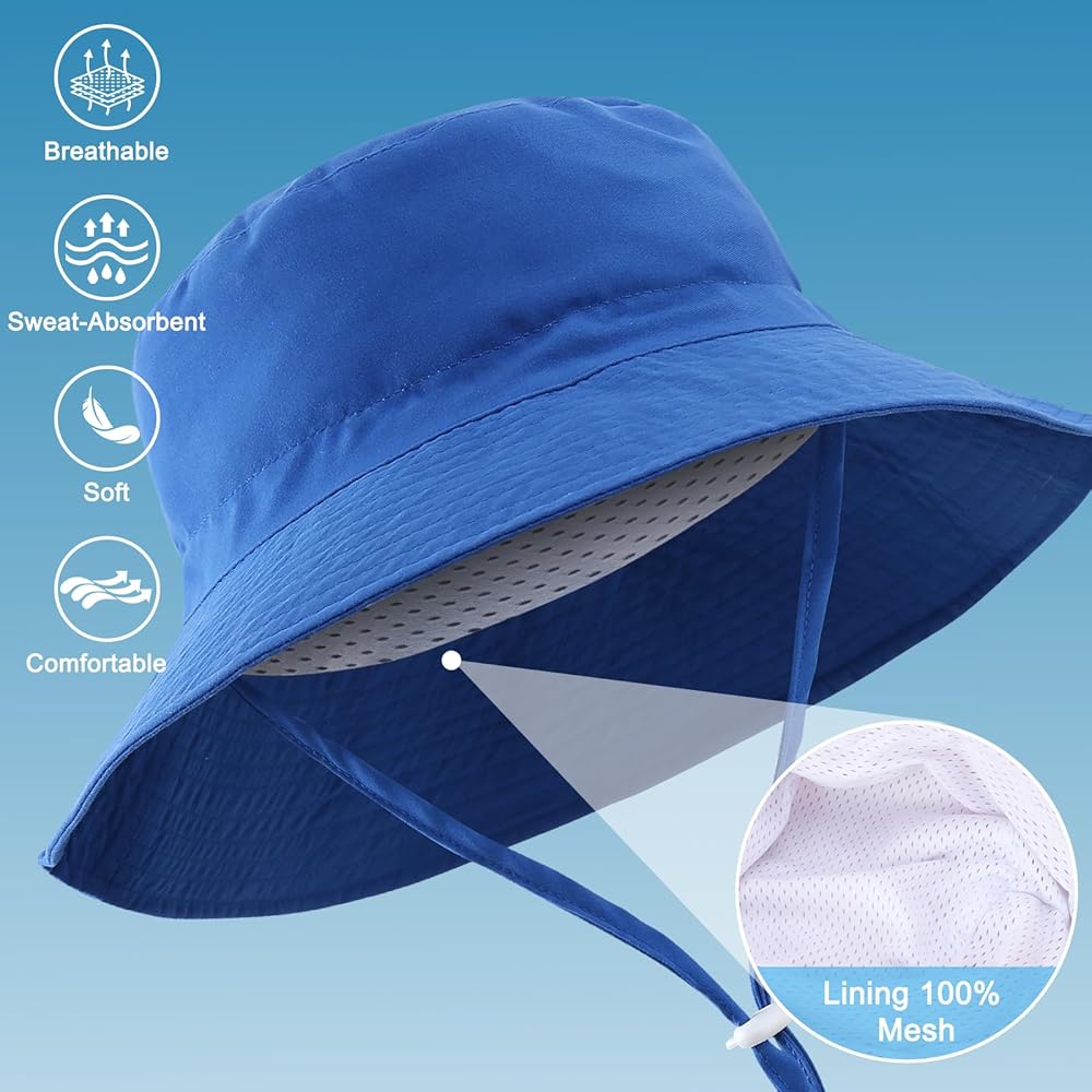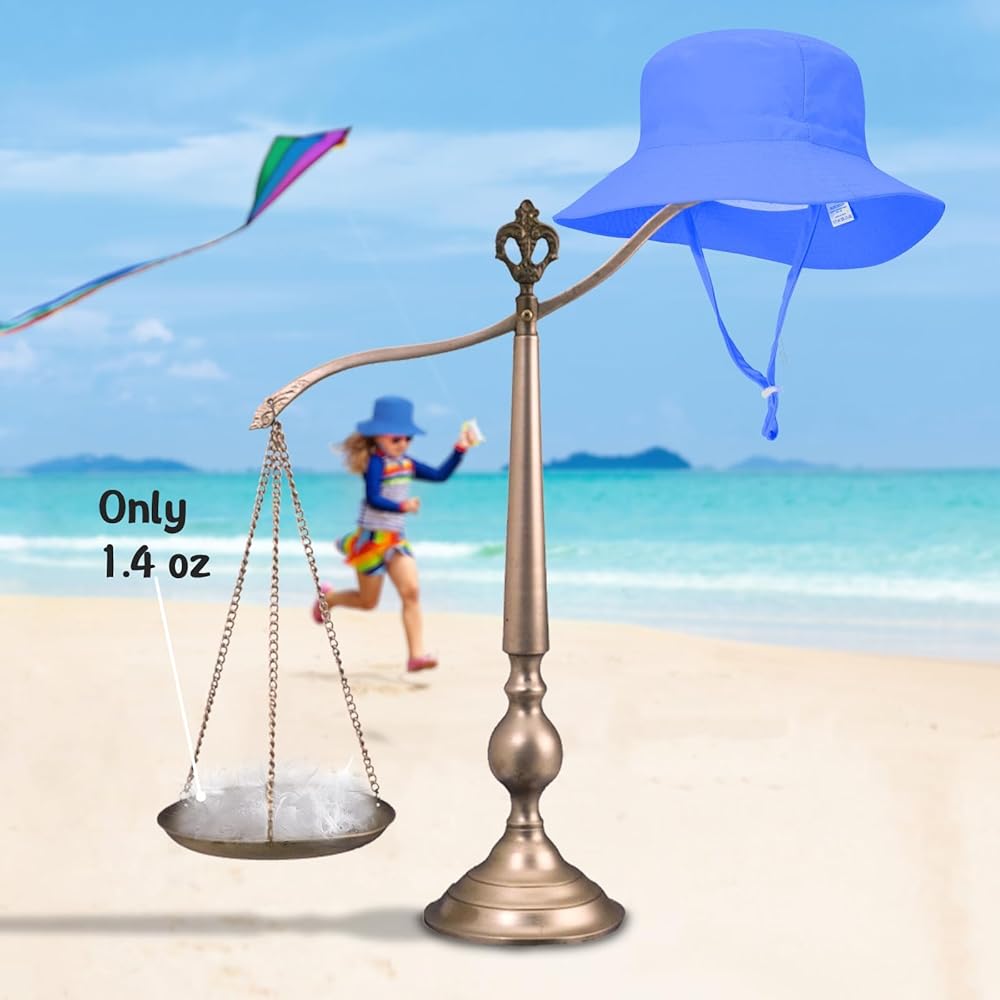 · Lightweight UPF 50+ sun protection material : Our kids sun hats are made from UPF50+ sunscreen polyester fabric, which blocks up to 98% of harmful UVA and UVB rays. The lightweight, breathable, and quick-drying fabric ensures your little one stays comfortable all day long. With a weight of only 10 ounces, your baby will feel like they're wearing nothing at all.