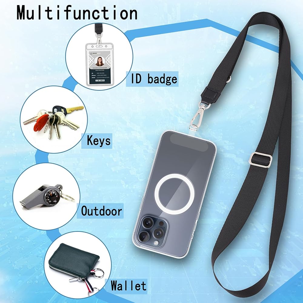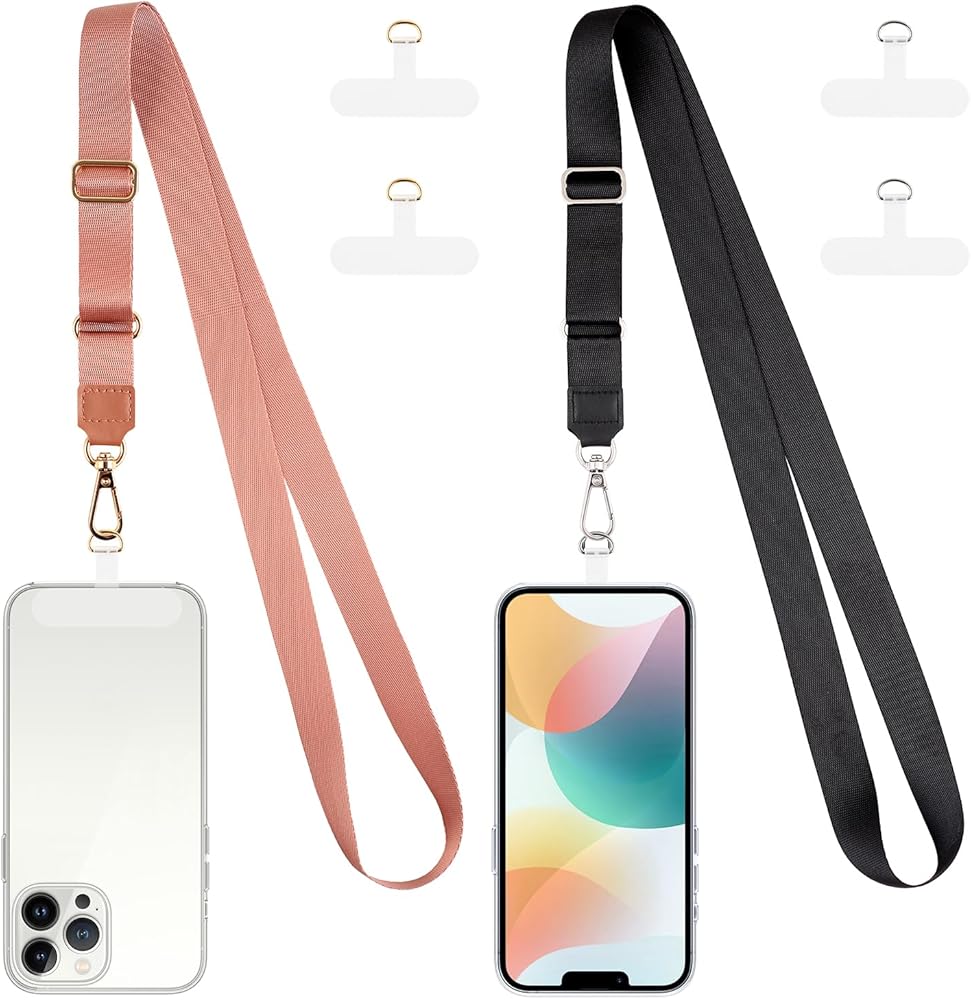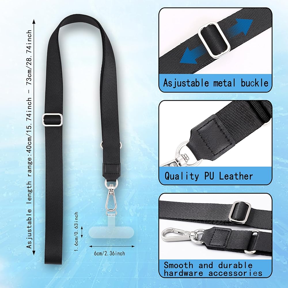 Versatile Phone Lanyards:The necklace is adjustable from 16 "to 28" and can be used as a phone lanyard, badge lanyard.which are beautiful and fashionable. The phone straps are convenient accessories, which ensure your phone stays in sight. you can keep your hands free while shopping, Party,walking the dog, hiking, biking, or taking photos. Not blockcharging port: The universal cell phone chain does not block your charging hole,Compatible for both corded and wireless charging without being removed. Easy installation:Put a Ultra-thin phone lanyard patch on your phone case or phone,The lanyard through the charging port of your phone case. Safety and Durable:Made of soft skin-friendly Nylon and tear-resistant PU leather, After several product tests,You don't have to worry about breaking your phone. Fits all mobile phones:Universal Phone Lanyard for all smartphones with a full-coverage case . Note: Not support half coverage phone case.