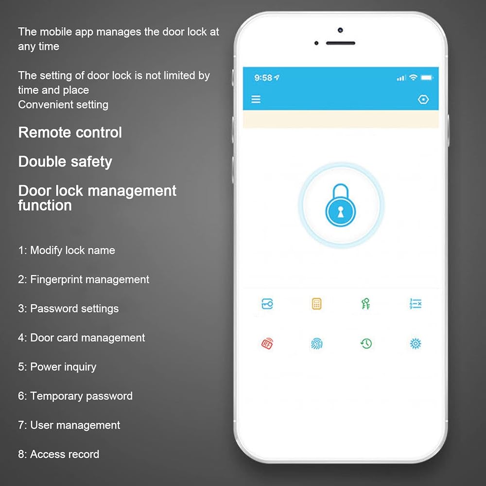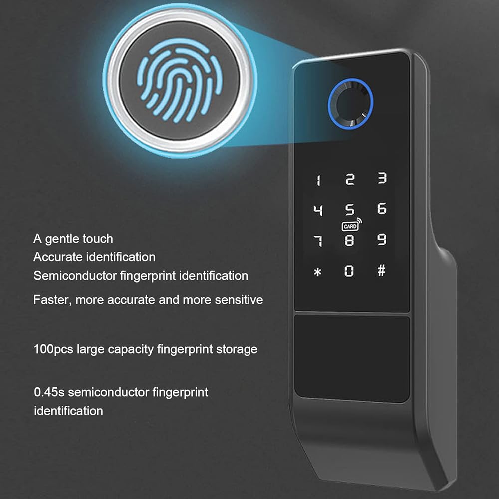 Fingerprint Identification: Smart lock recognizes your fingerprint in just 0.45 seconds, and 100pcs large capacity fingerprint storage.
