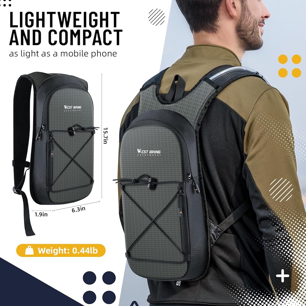 حقيبة الظهر خفيفة الوزن ودائمة: تم تصميم حقيبة ظهر حزمة الترطيب هذه فقط من مواد بوليستر عالية الجودة ، مما يوفر توازنًا مثاليًا من المتانة والراحة الخفيفة. القياس بحجم مضغوط (15.7x6.3x1.9in) الذي يتحدى من الداخل الفسيح ، فهو يستوعب دون عناء المثانة المائية 2 لتر ، ويتحول إلى حقيبة ظهر للمياه لتنزه أو الركض أو ركوب الدراجات بعثارات