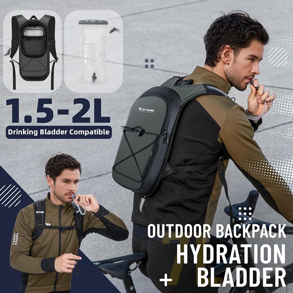 نظام ترطيب الوصول السريع: حقيبة الظهر المائية هذه تأتي مع مثانة المياه المقاومة للتسرب من فئة TPU 1.5-2L. تُحمل المقصورة المخصصة بشكل آمن المثانة ، في حين أن خرطوم الوصول السريع يضمن أنه يمكنك الشرب أثناء التنقل دون كسر خطوة. مثالي للأنشطة عالية الطاقة مثل الجري ، أو ركوب الدراجات