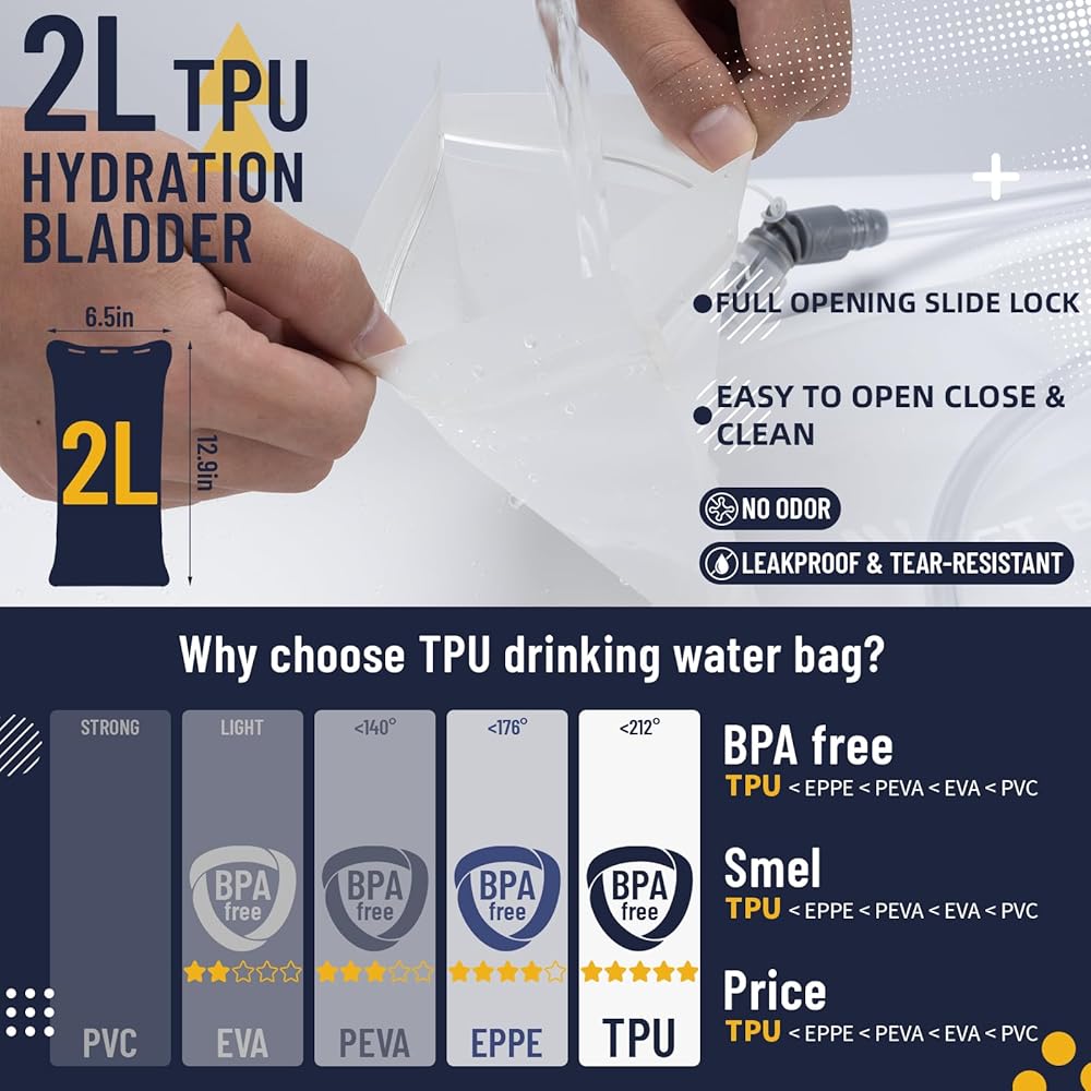 حقيبة ظهر مرطبة مع مثانة ترطيب من مادة TPU، حقيبة ظهر مائية خفيفة الوزن للمشي لمسافات طويلة، حزمة ترطيب مع مثانة مياه سعة 2 لتر للجري وركوب الدراجات والتسلق والتخييم والرياضات الخارجية