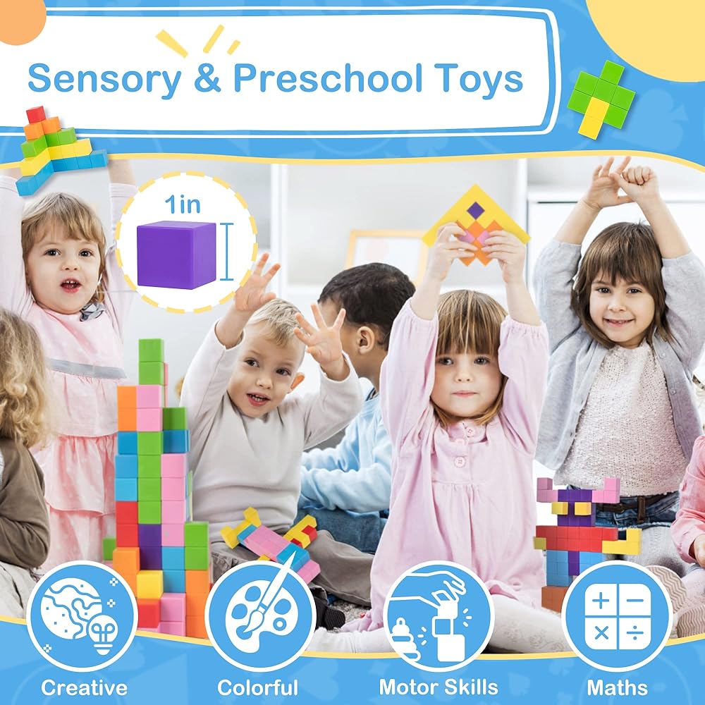 56 قطعة من الكتل المغناطيسية المريحة، مكعبات مغناطيسية مقاس 1 بوصة للأطفال، مكعبات بناء للأطفال الصغار، مجموعة بناء تعليمية لمرحلة ما قبل المدرسة، مكعبات ألعاب مونتيسوري الحسية للأطفال من عمر 3 4 5 6 7 8 سنوات للأولاد والبنات
