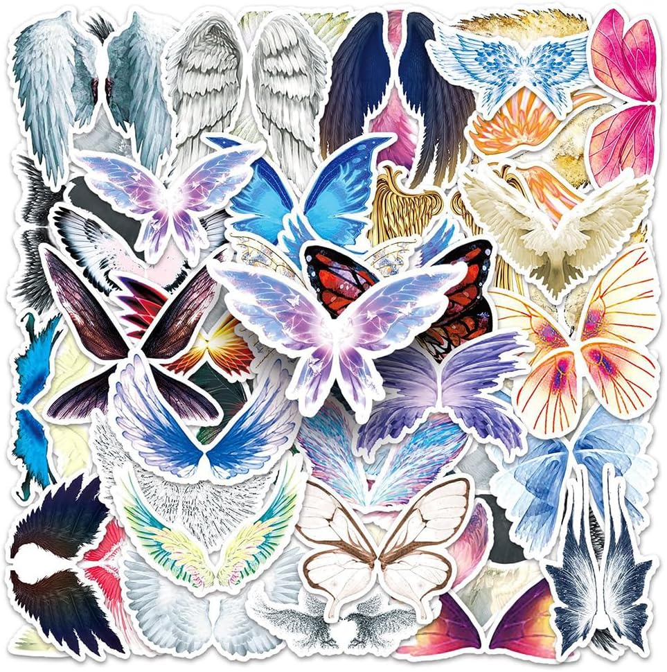 50Pcs Angel Wings Stickers Waterproof Vinyl Decals for Adult Teen Kids Cup Water Bottles Laptop Luggage Computer Mobile Phone Guitar Skateboard Decoration