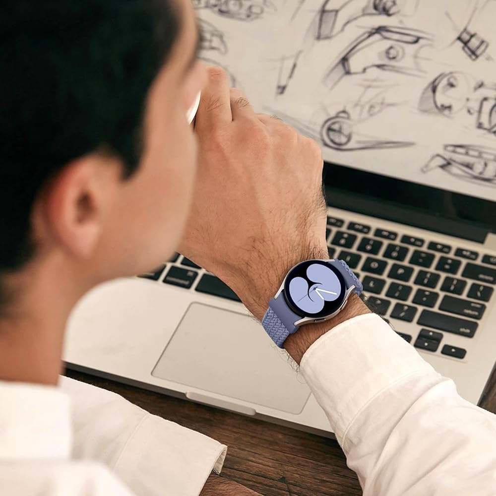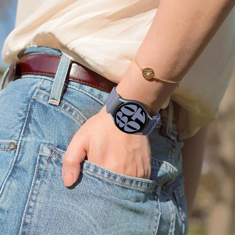 【مواد نايلون ناعمة وذات تنفس】 مصنوعة من نايلون مضفر عالي الجودة ، توفر فرقة Galaxy Watch 4 ملاءمة مطوية وتنفس. المادة الناعمة مريحة على الجلد وتساعد على الحفاظ على معصمك باردًا وجافًا طوال اليوم. سواء كنت تمارس التمارين الرياضية أو في المكتب ، فإن هذه الفرق الموسيقية Samsung Watch 7 تضمن الراحة طوال اليوم لكل من الرجال والنساء