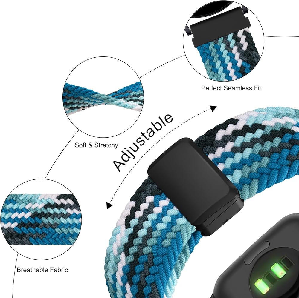 Braided Bands for Amazfit Bip 5 / Bip 6 Smart Watch Bands, 22mm Soft Adjustable Nylon Sport Replacement Strap Compatible with Amazfit Bip 5 / Bip 6 / GTR 4 Bands Women Men