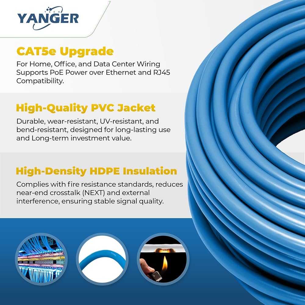 Cat5e Ethernet Cable 1000ft - 24Awg Solid Bare Copper ، Poe ++ ، كابل شبكة UTP عالي السرعة ، مربع سحب ، لأجهزة بيانات البيانات/المكتب/الأذكي
