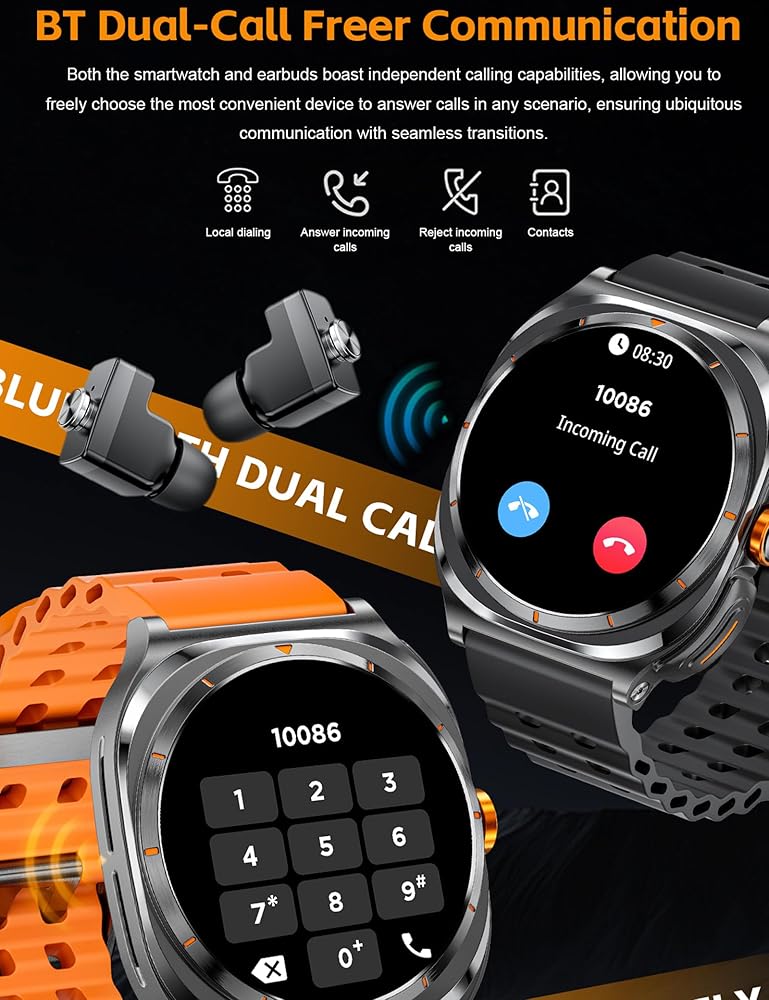 ساعة ZJX الذكية مع سماعات الأذن ، وساعة رياضية 2 في 1 مع عداد الخطى ، وساعة اللياقة الوعرة بحجم 1.53 بوصة ، وسعرات السعر
