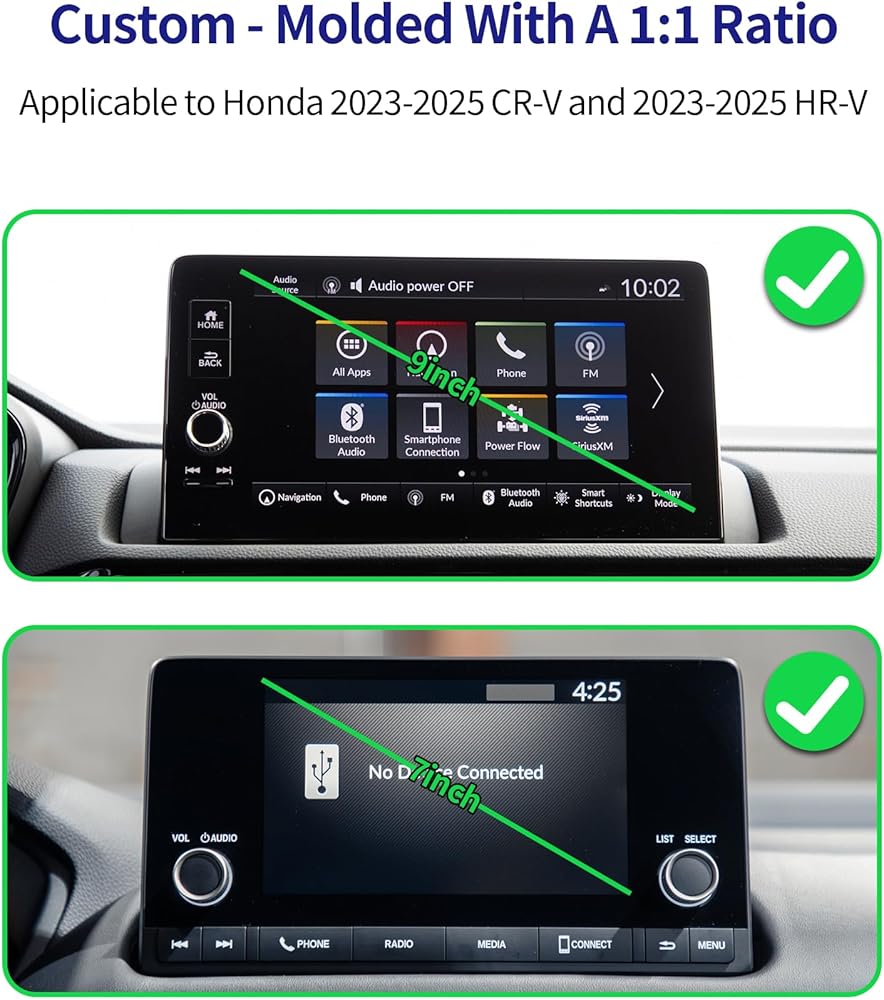 Specially designed for 2023 2024 2025 Honda CR-V/Hybrid/ 2023 2024 2025HR-V Accessories. This phone holder is installed on a 7/9 inch screen only and does not affect screen operation. NOTE: