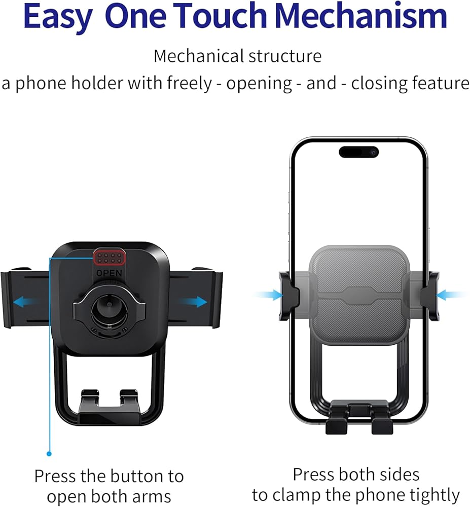 【One - touch release】The Masergogo car phone holder is equipped with a quick - release button and adjustable clamping arms. It can lock or release your phone in just 0.3 seconds.