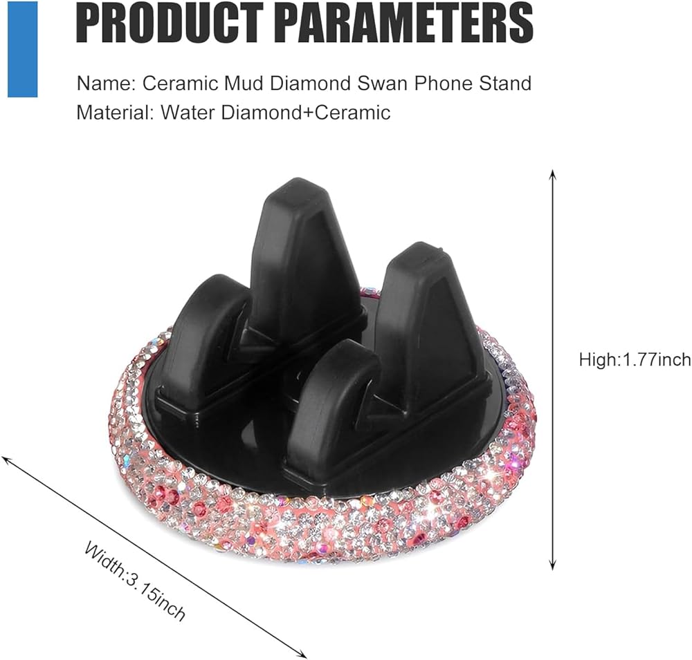 Rhinestone Decoration: The car central control mobile phone holder has a rhinestone design on the exterior, which adds luxury and personalization to the car interior, while enhancing the visual effect of the holder.