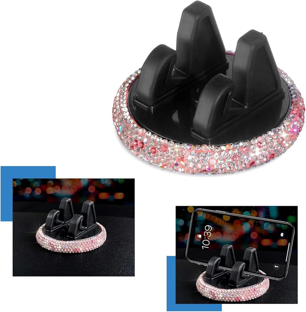 Packing Details: You will receive a 3.15 " x 1.77 " pink car center console phone holder with rhinestones. The holder design is easy to adjust and put the phone in, which is convenient for quick operation and navigation viewing while driving.