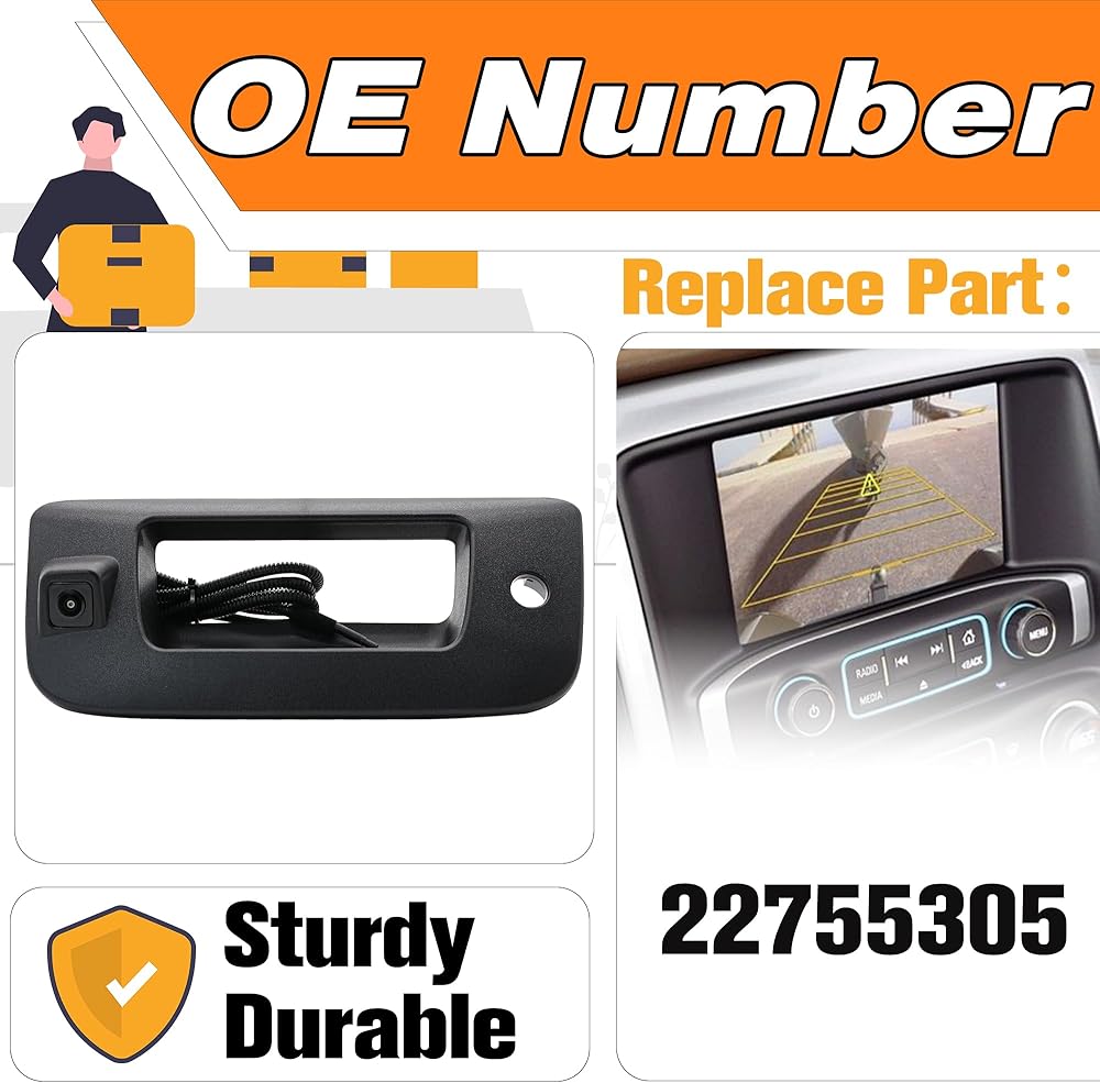 Tailgate Handle Backup Rear View Camera Compatible with 2007-2013 Chevy Silverado GMC Sierra 1500 2500 3500 HD.Replace# 22755305.Reverse Back Up Camera Rear Tailgate Latch Handle with Key Hole