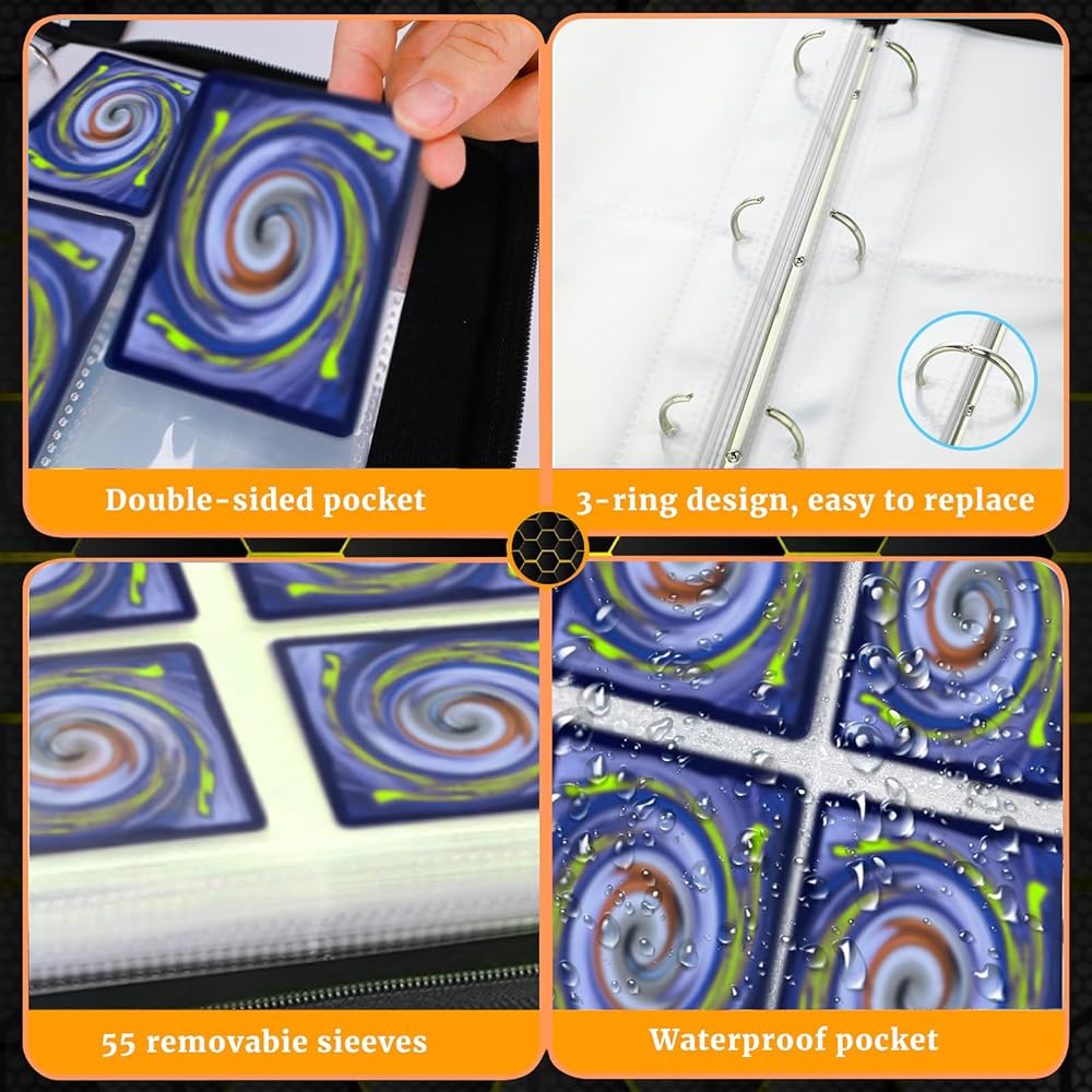 440 Cards Capacity 4-Pocket Card Binder, including 55 high-quality removable sleeves, holds up a total of 440 for trading card games.
