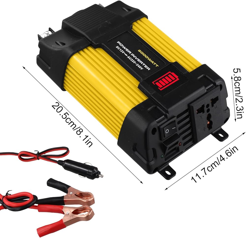 [مدمجة ومحمولة]: التصميم الخفيف والضغوط يجعل هذا العاكس سهل حمله وتخزينه في سيارتك. يتضمن مشابك البطارية لاتصال مريح بمصدر الطاقة في سيارتك.
