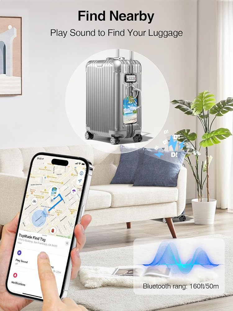 العثور على دعمي الكامل: يعمل مع Apple Find My ؛ تعقب علامة الأمتعة المدمج ، لا حاجة إلى Airtag ؛ بمجرد الاقتران ، يمكنك إعداد موقع في الوقت الفعلي ، وتنبيهات الصوت ، وتلقي التخلف عن الإشعارات ، ووضع الوضع المفقود ، ولا تقلق أبدًا بشأن فقدان محفظتك ؛ نطاق البلوتوث 60M ، الإنذار 100 ديسيبل