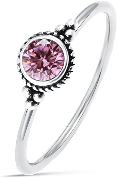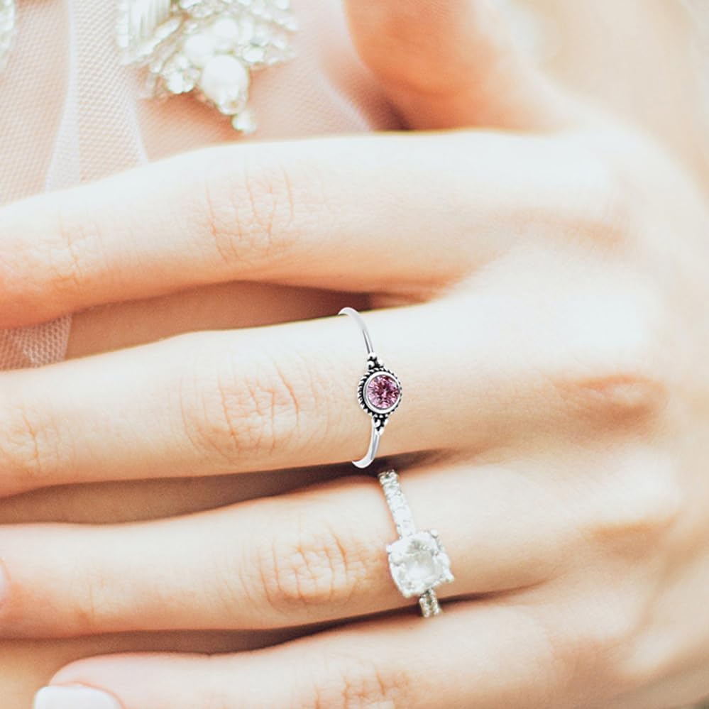 【Occasion】It's retro silver 6mm round birthstone ring for women.You can wear it everyday.so the design is perfect for any occasion to wear.925 sterling silver ring,stackable ring,tiny thin ring,small gemstone ring,retro antique silver mini crystal ring for women.
