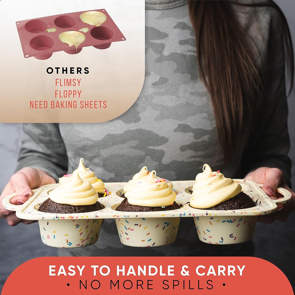 قوي ولكنه مرن للتعامل دون أي جهد - على عكس المقالي المعدنية الواهية ، فإن مقلاة الكب كيك هذه توفر استقرارًا ممتازًا مع قبضة مريحة وحواف مقواة. سواء كنت تستخدمها كقواص كعكة من الكوب للخبز ، أو مقلاة كب كيك السيليكون ، أو مقلاة الكعك ، فمن السهل حملها - لا توجد انسكابات مضمونة.