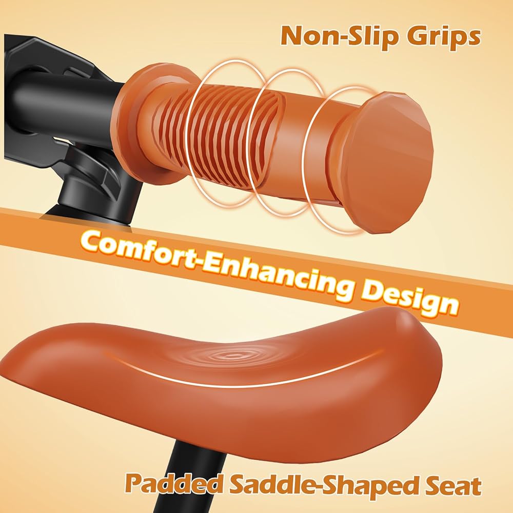 【التصميم المدروس للراحة】 يتميز بارتفاع مقعد قابل للتعديل (14.2 "-18.3") لتنمو مع طفلك ، وسرج مبطن ناعم ، ومسند للأحذية ، ومقود غير انزلاق لتحسين التحكم والراحة. تم تصميم كل التفاصيل لتوفير رحلة ممتعة وآمنة.