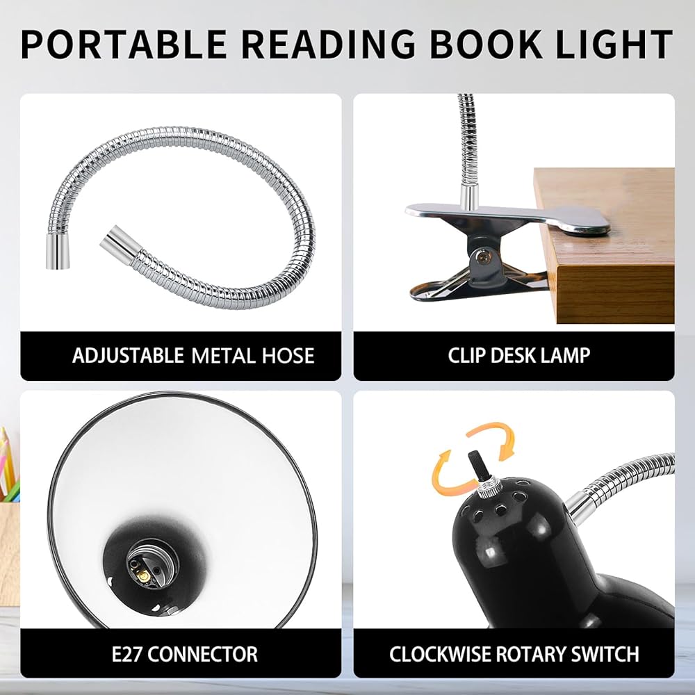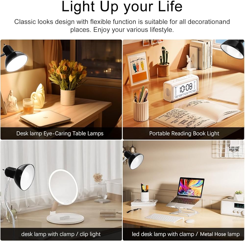 • 【360 درجة مرن groseneck】: يمكّن ARM GOSONECK المرن مصباح مكتب ضوء القراءة هذا من تعديل أي زاوية تعجبك دون أي ضوضاء ، والتصميم الخفيف يجعله محمولًا للغاية. يمكنك العمل أو القراءة أو دراسة الكتب ضوء قراءة ضوء في أي مكان حتى في السرير ، بالإضافة إلى ذلك يمكن استخدامه أيضًا لإضاءة أسطح العمل عالية الجودة.