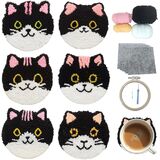 مجموعة 57lilina Punch Needle Coaster Kit للبالغين المبتدئين، 6 مجموعة كاملة من أدوات التطريز بإبرة قطط الحيوانات، دليل خطوة بخطوة اصنع قواعد شرب بإبرة لكمة للمبتدئين