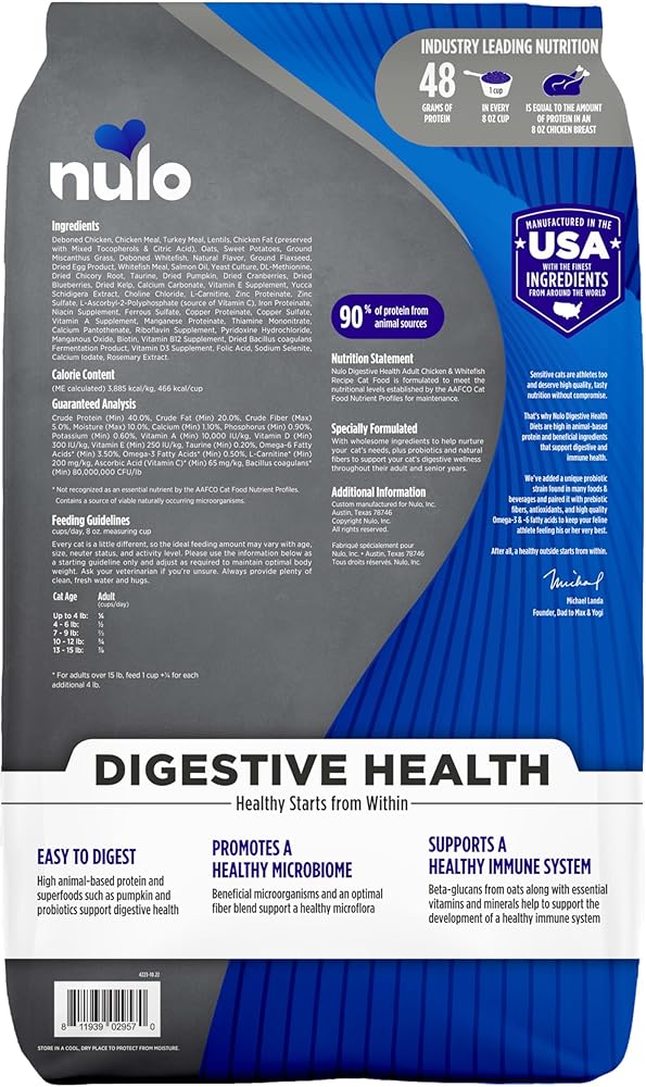 This recipe is formulated with wholesome ingredients to help support your cat's digestion as well as probiotics and natural fibers to support their digestive wellness. With 48 grams of protein in every 8-ounce cup, your cat will receive abundant amino acids along with premium taste.