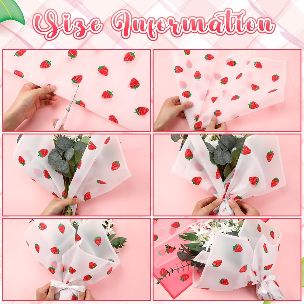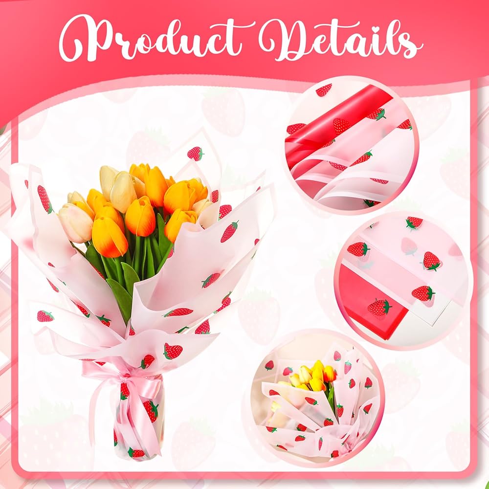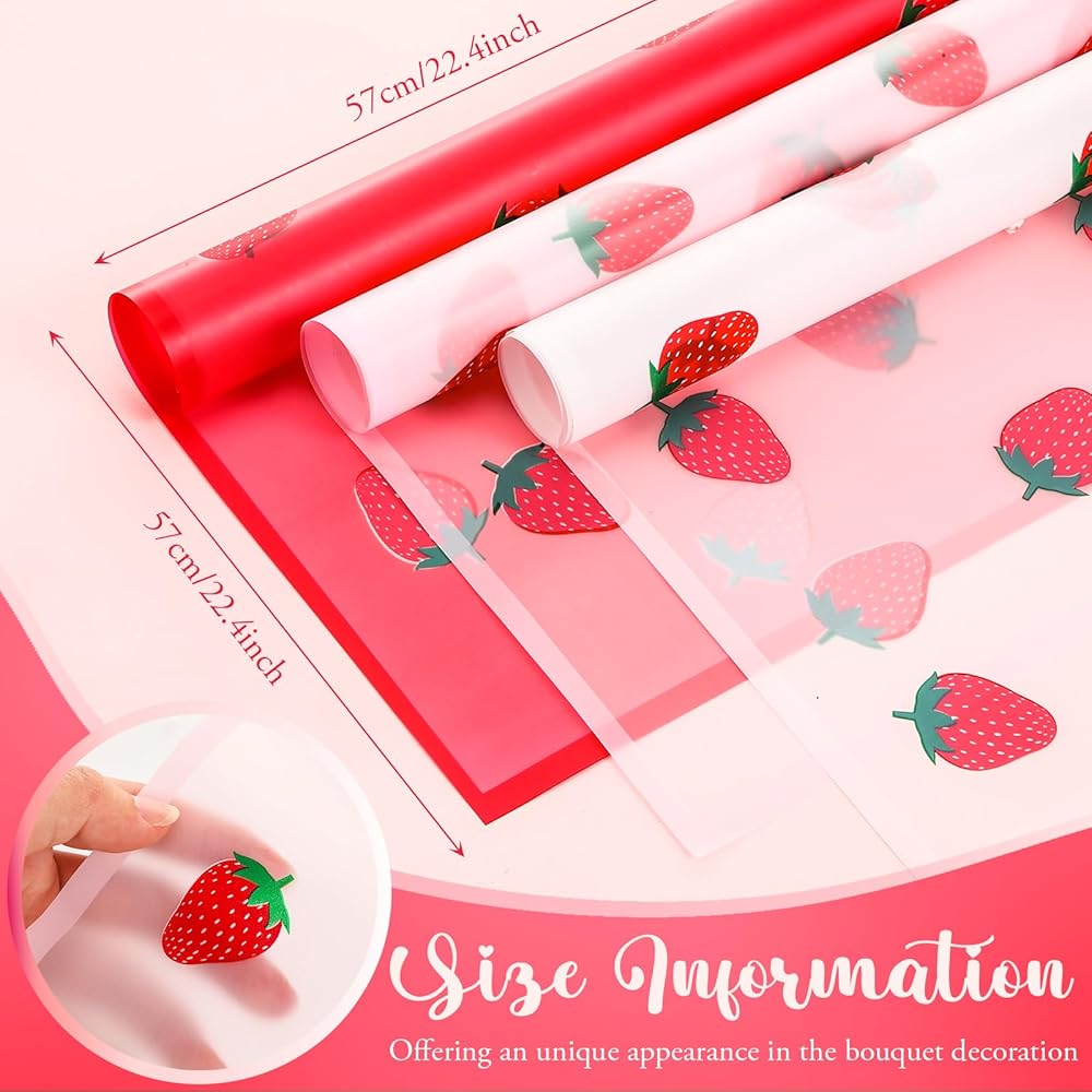 The packaging wrapping paper is designed in the strawberry pattern, offering an ideal appearance in the bouquet decoration.