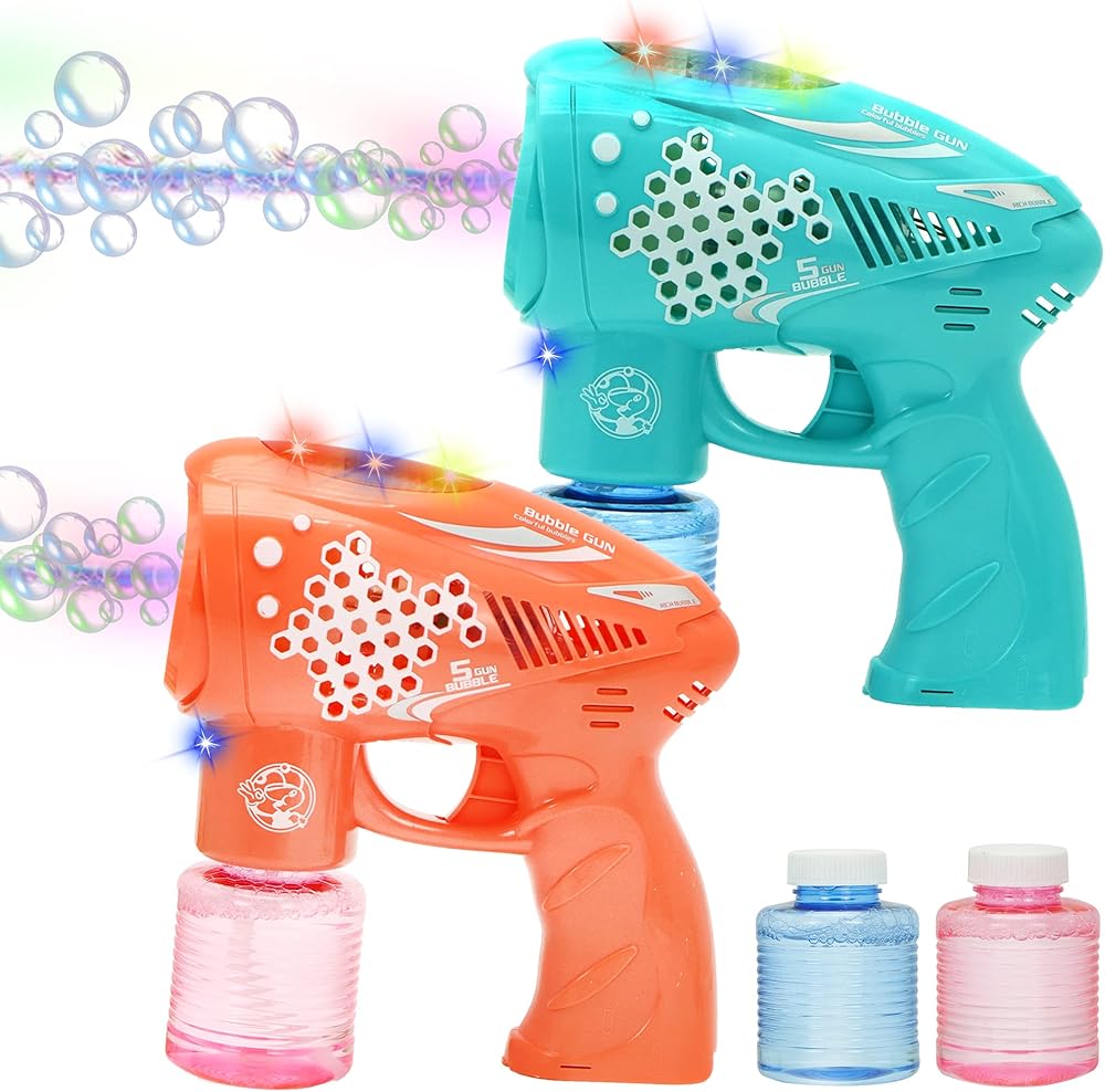 JOYIN 2 Bubble Guns with 2 Bottles Bubble Solution (110ml) for Kids, Bubble Blaster with Music and Light for Party Favors, Summer Toy, Outdoors Activity, Birthday Gift