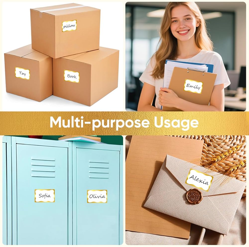 Gold Foil Name Tags Stickers, 200PCS Name Tag Stickers for School Office Home, 2"x 3" Self Adhesive Name Tags Sticker Name Badges Labels for School, Office, Home, Party, Conferences