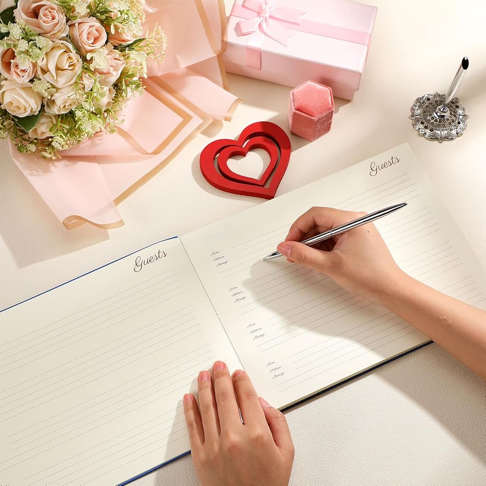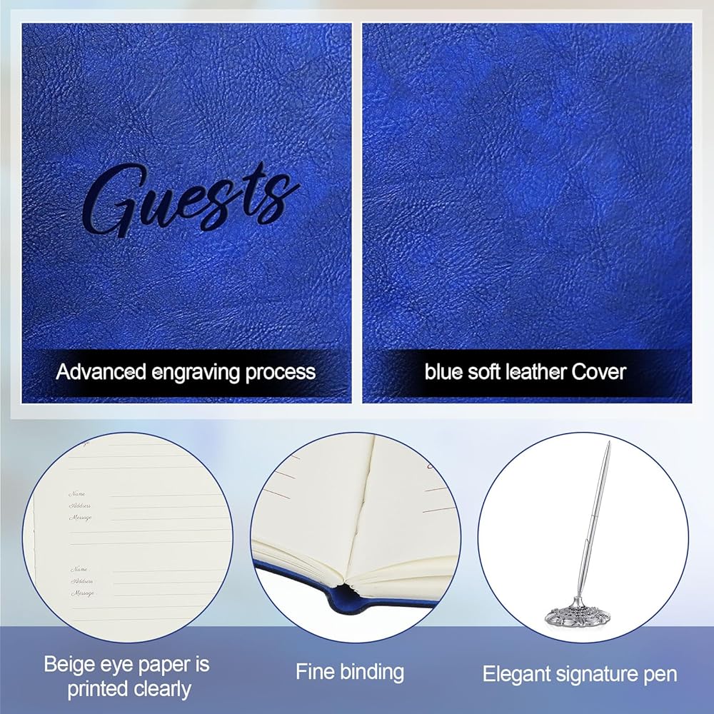 Available for Most Events: classic colors and chic appearance make these wedding guest books with pen fit for various occasions, such as for weddings, engagements, parties, baby showers, funerals, and many other events, leaving their significant moment