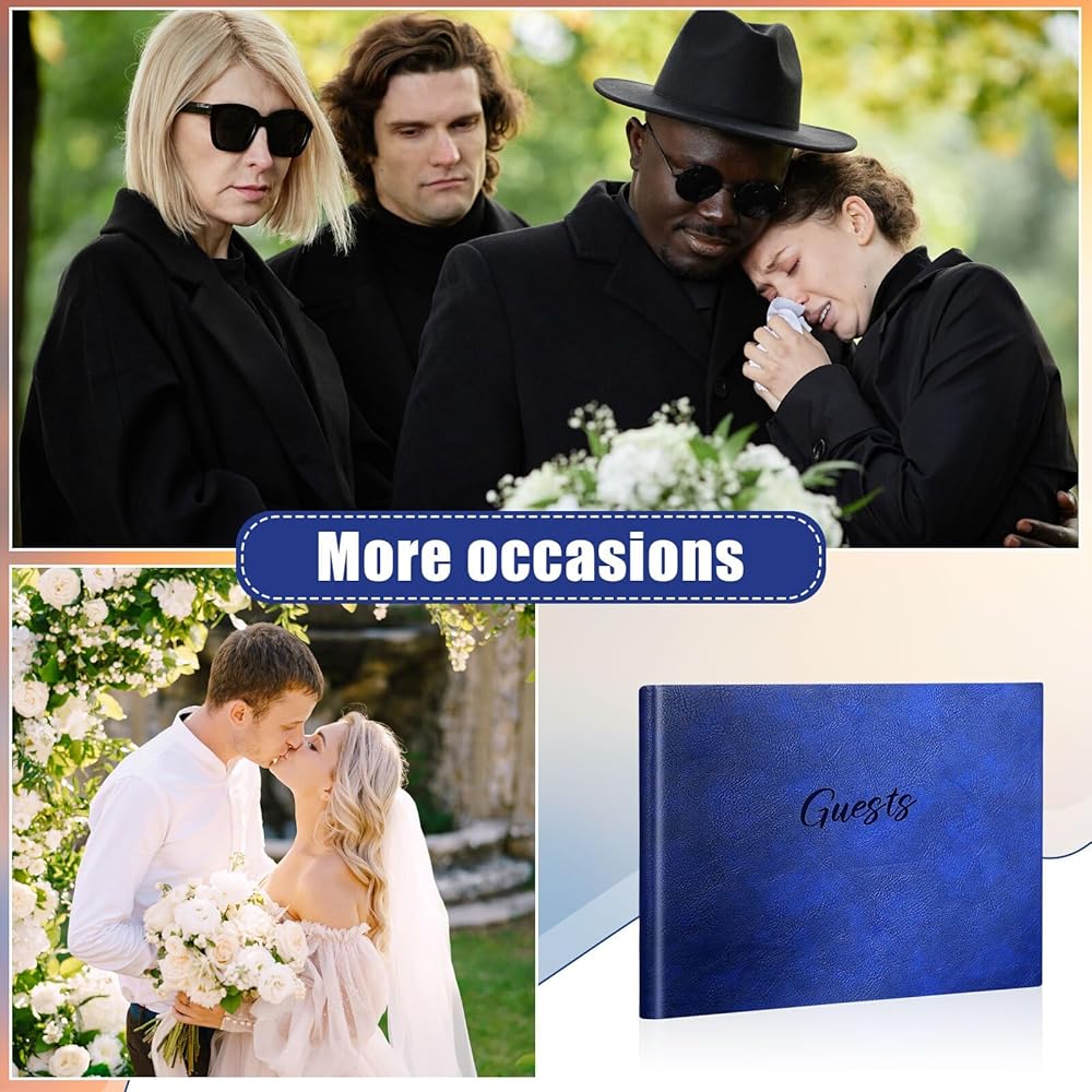 Safe and Sturdy Material: guest book for funeral is mainly made of quality faux leather and paper, soft and smooth to touch, safe and reliable, and the wedding pen is mainly made of quality metal, sturdy and solid, can serve you for a long time