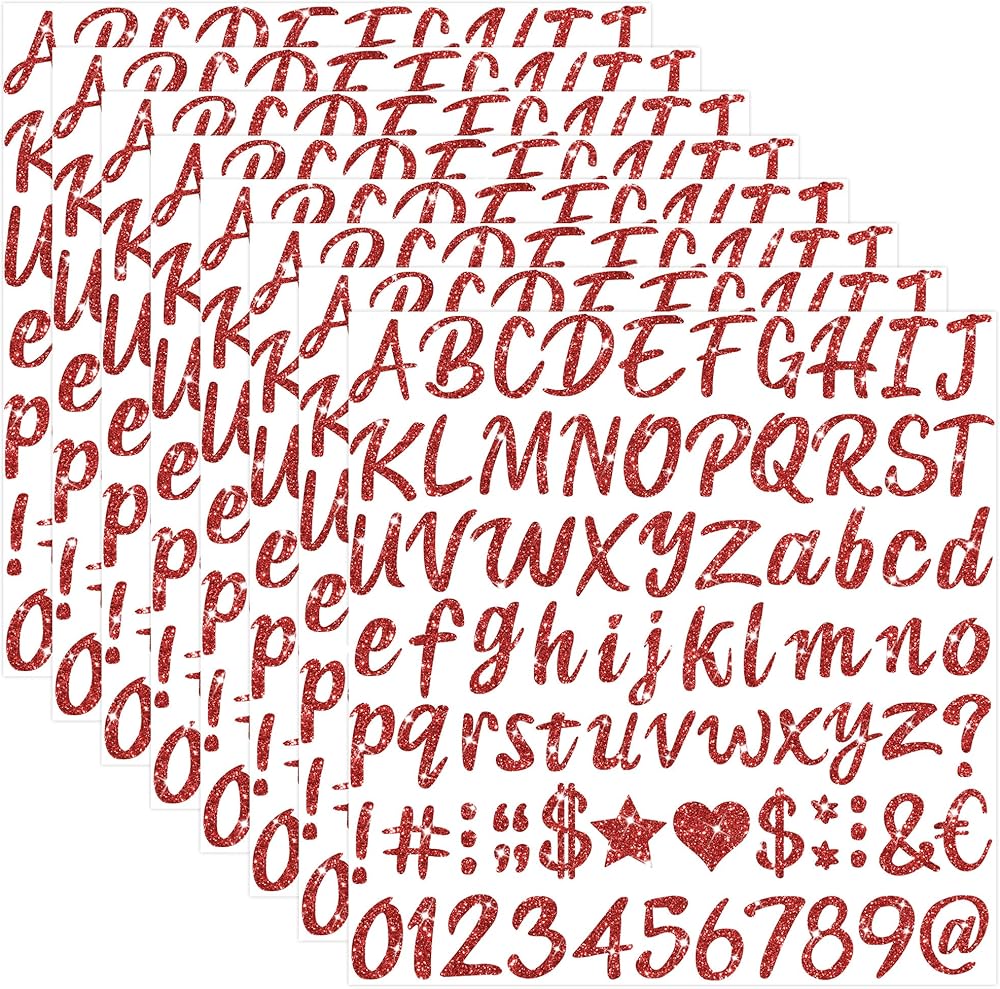 • تصميم مبهر ومتعدد الألوان: تتميز هذه الملصقات بخط أنيق مع لمسة بريق فاخرة بألوان متعددة ، بما في ذلك الذهب والفضة والأسود والأحمر والوردي والأخضر والأزرق والأرجواني. إنها مثالية لإضافة لمسة من التطور إلى أي مشروع. يُمزج الرسائل والأرقام والرموز بسهولة لإنشاء تصميمات مخصصة للتخرج وحفلات الزفاف وزينة الحفلات وأكثر من ذلك